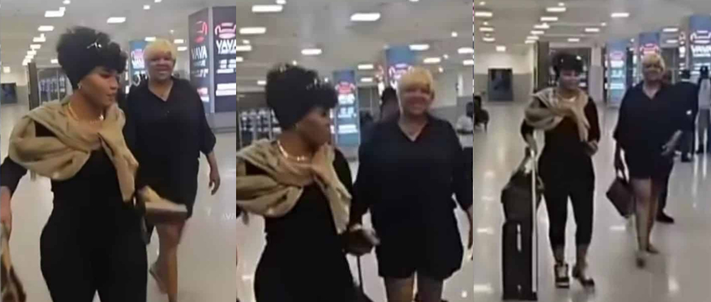 In viral clips making the rounds online, the actress was spotted at the airport looking stylish in a black outfit, alongside fellow actress Toyin Abraham.