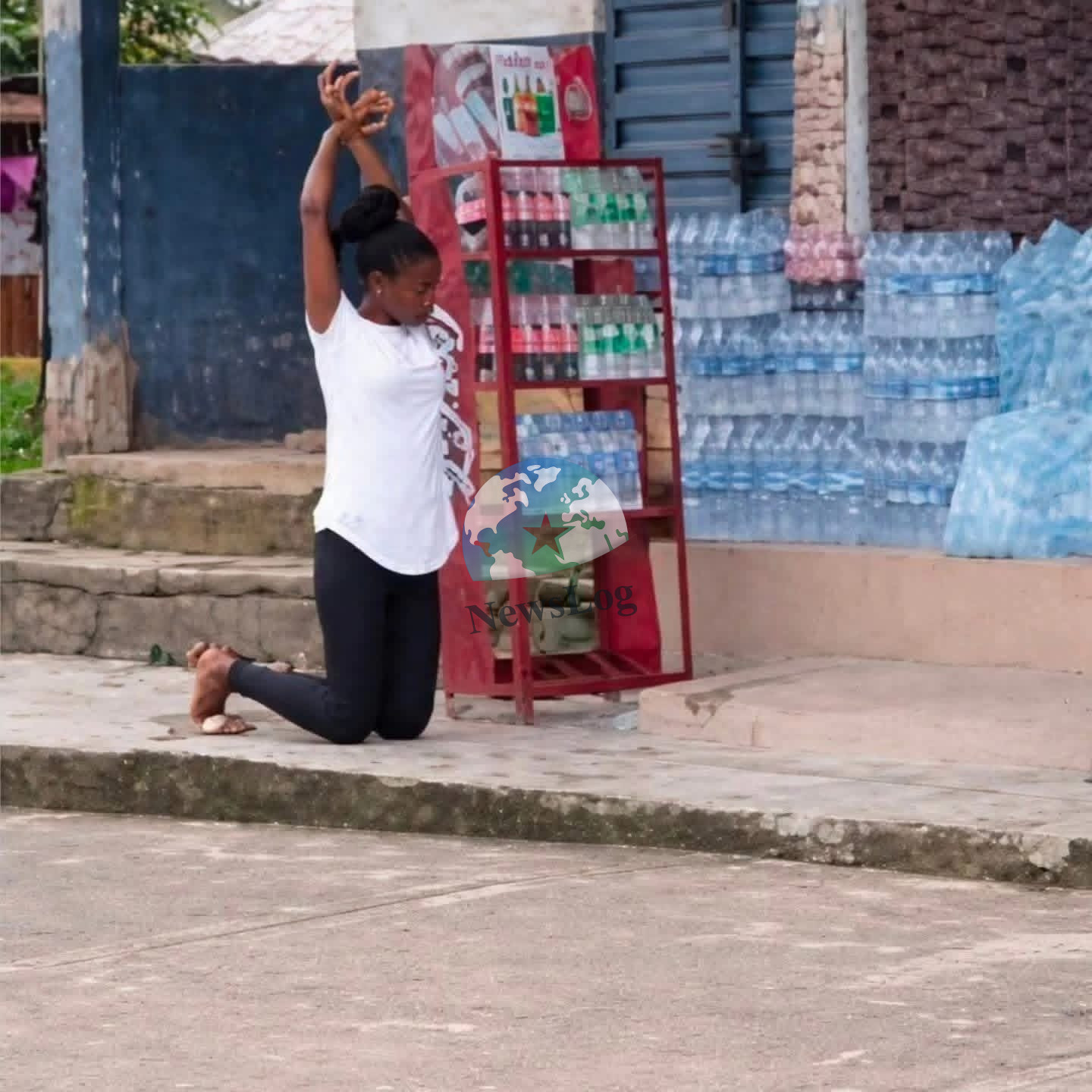 The viral image shows the lady in a white top and black leggings, kneeling beside a red drinks rack stacked with bottled water and soda. It has fueled discussions on marriage, respect, and workplace rights in informal sectors. Many wonder if such punishment crosses the line when the trainee is someone’s new wife.