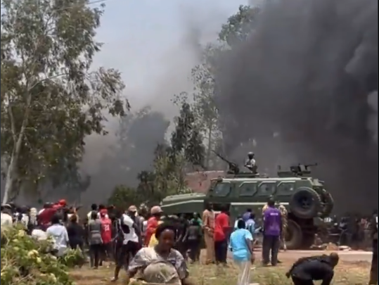 “Our people are being killed, they can’t do anything,” one of the protesters lamented, reflecting the frustration among locals.