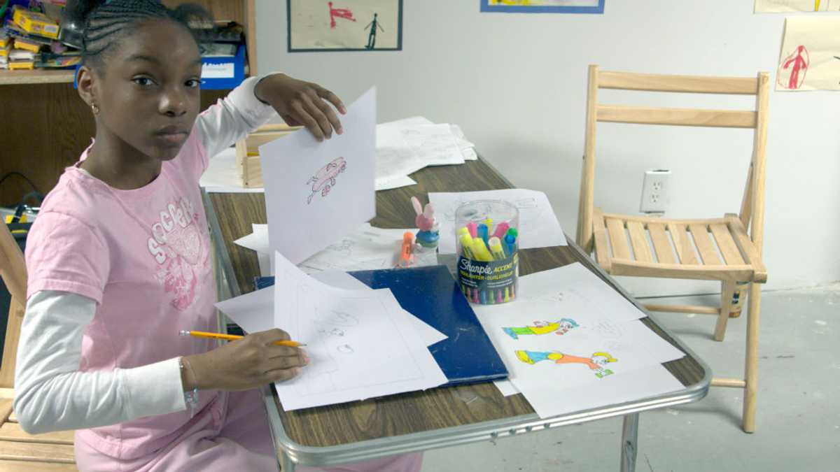 She nodded enthusiastically, running to her room and returning with a folder bursting with artwork.