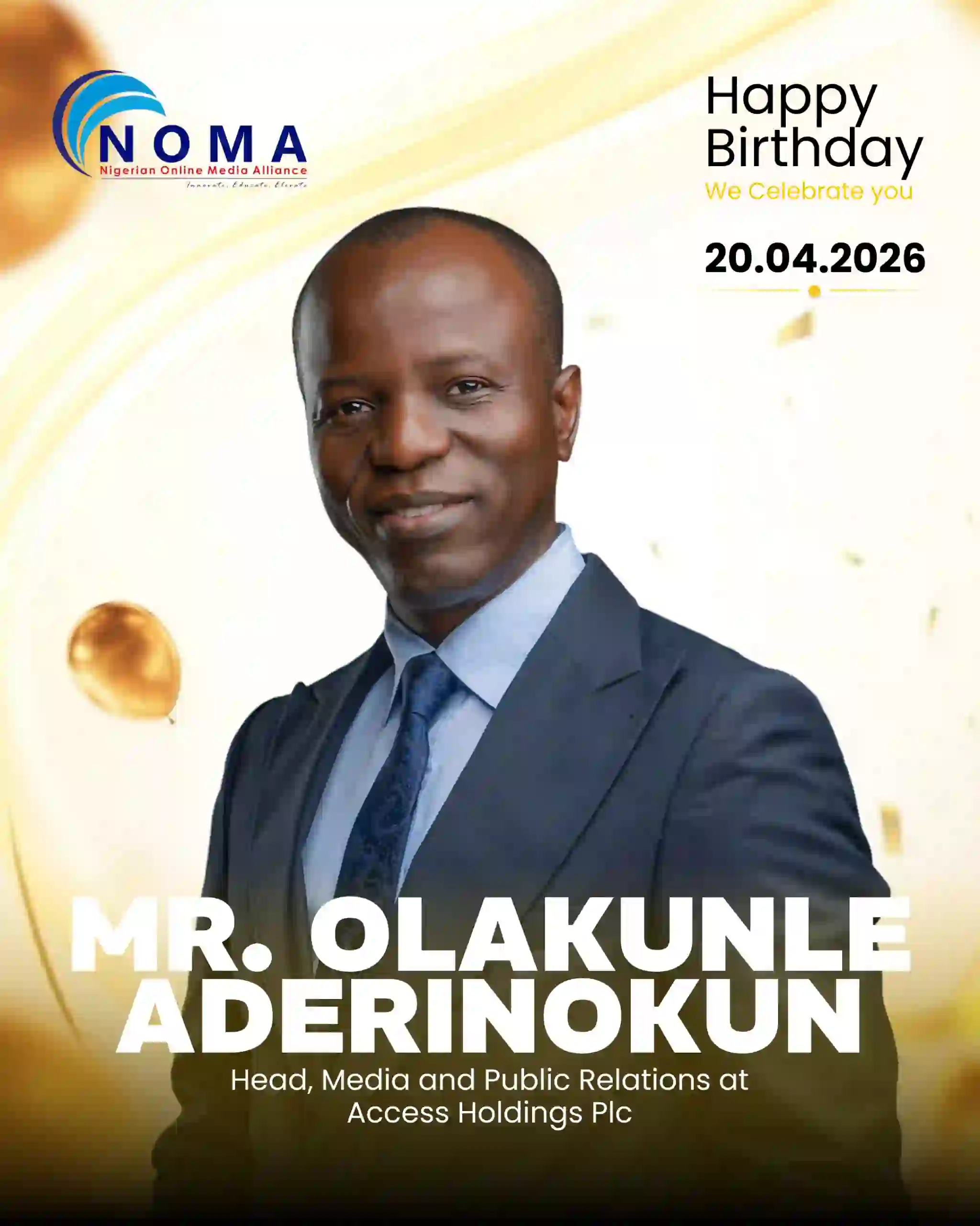 The Nigerian Online Media Alliance (NOMA) has celebrated Mr. Olakunle Aderinokun on his 55th birthday, describing him as a distinguished strategic communications expert and media professional whose nearly three-decade career continues to shape Nigeria’s communications and business landscape.